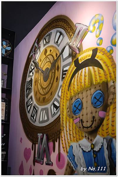 進入店內彷彿到了另一個時空國度,右邊是大一面童趣魔幻彩繪牆
