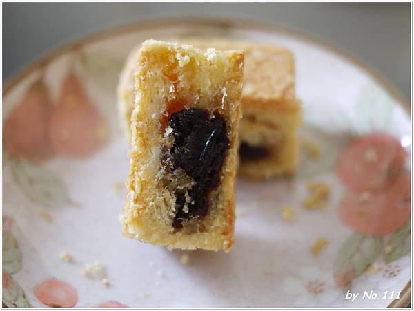 老婆餅外皮很酥,裡面有一層麻糬包覆著紅豆餡,口感外酥內Q軟